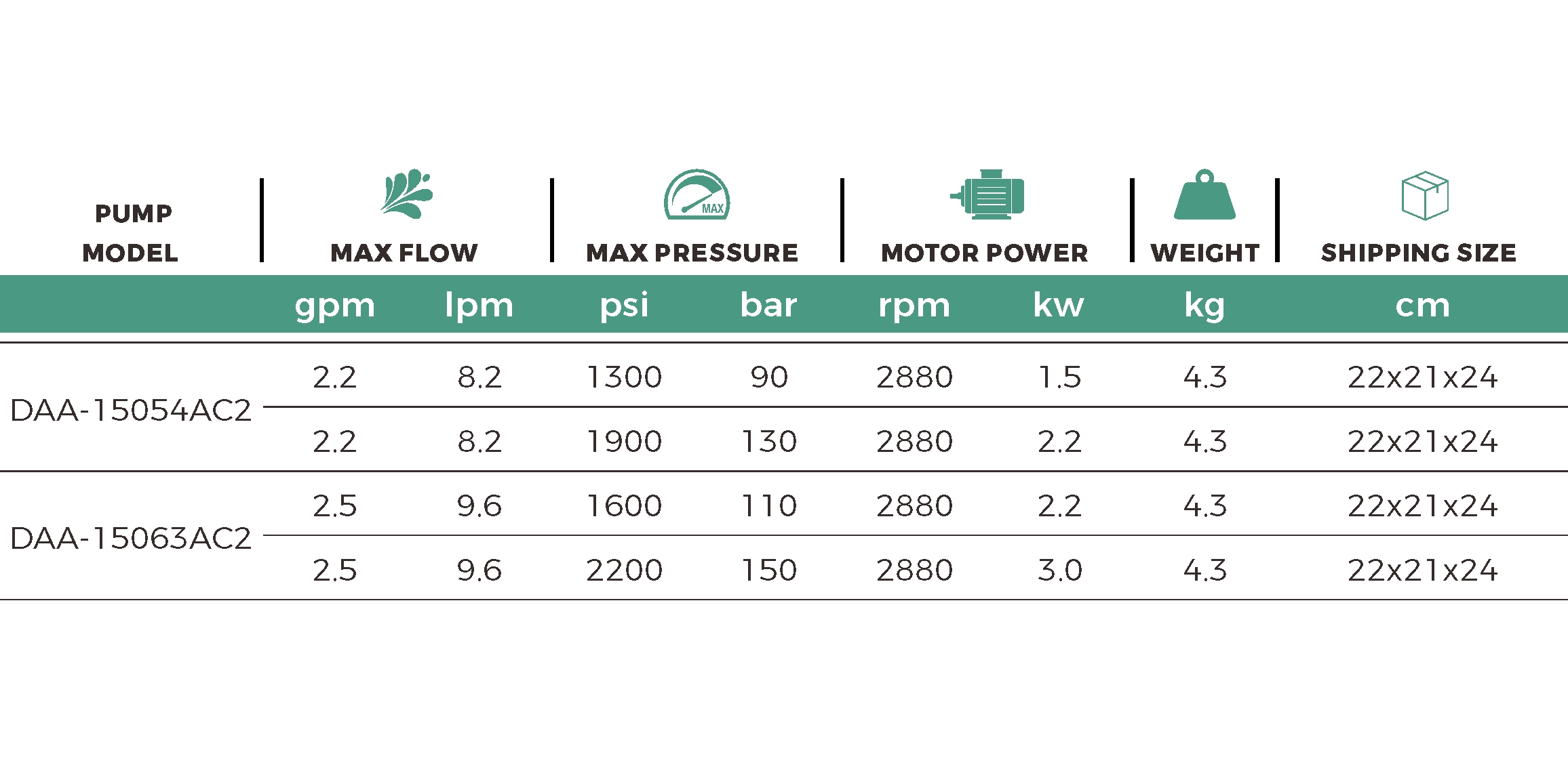 | Pump Model: | DAA-15054AC2 | |