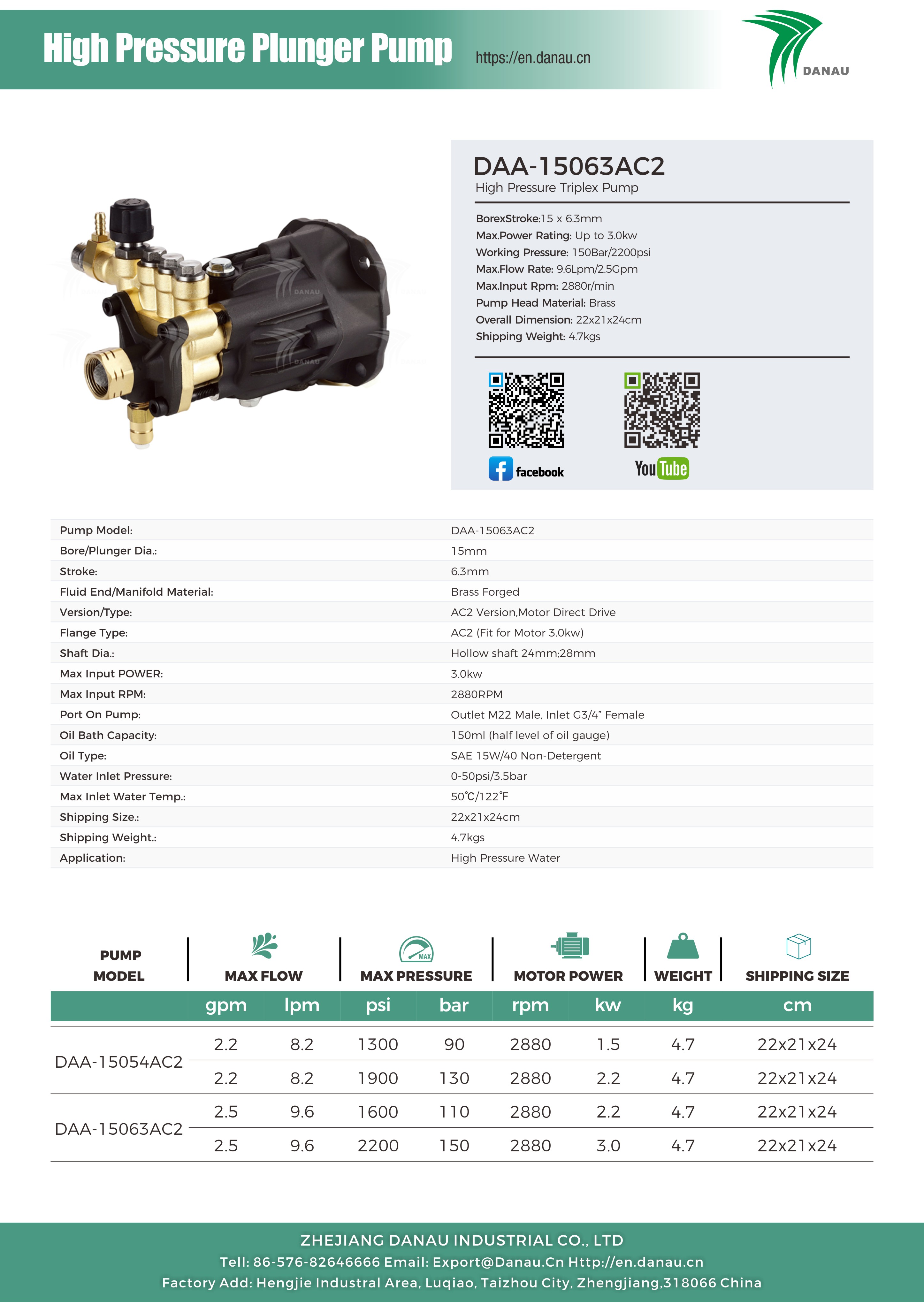 | Port On Pump: | Outlet M22 Male, Inlet G3/4” Female | |