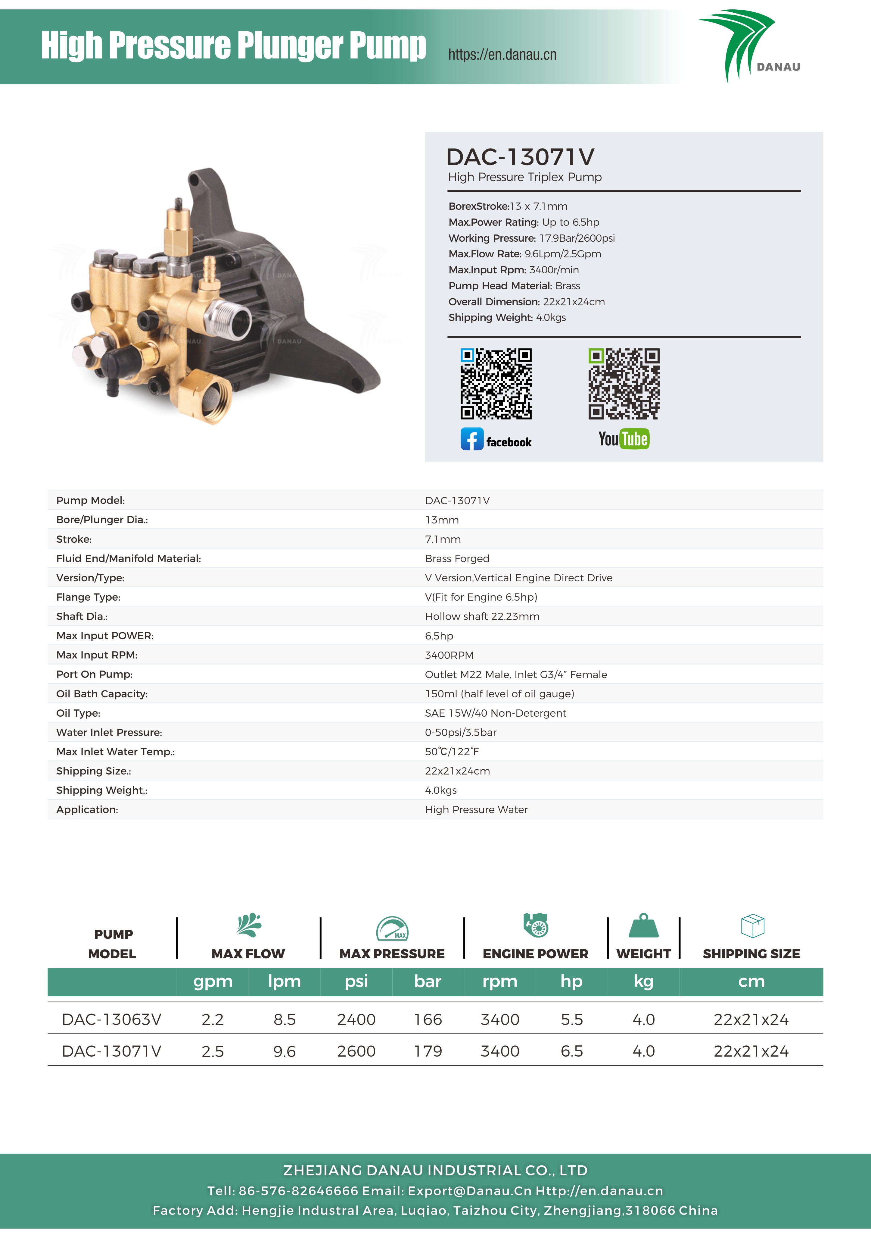 | Port On Pump: | Outlet M22 Male, Inlet G3/4” Female | |