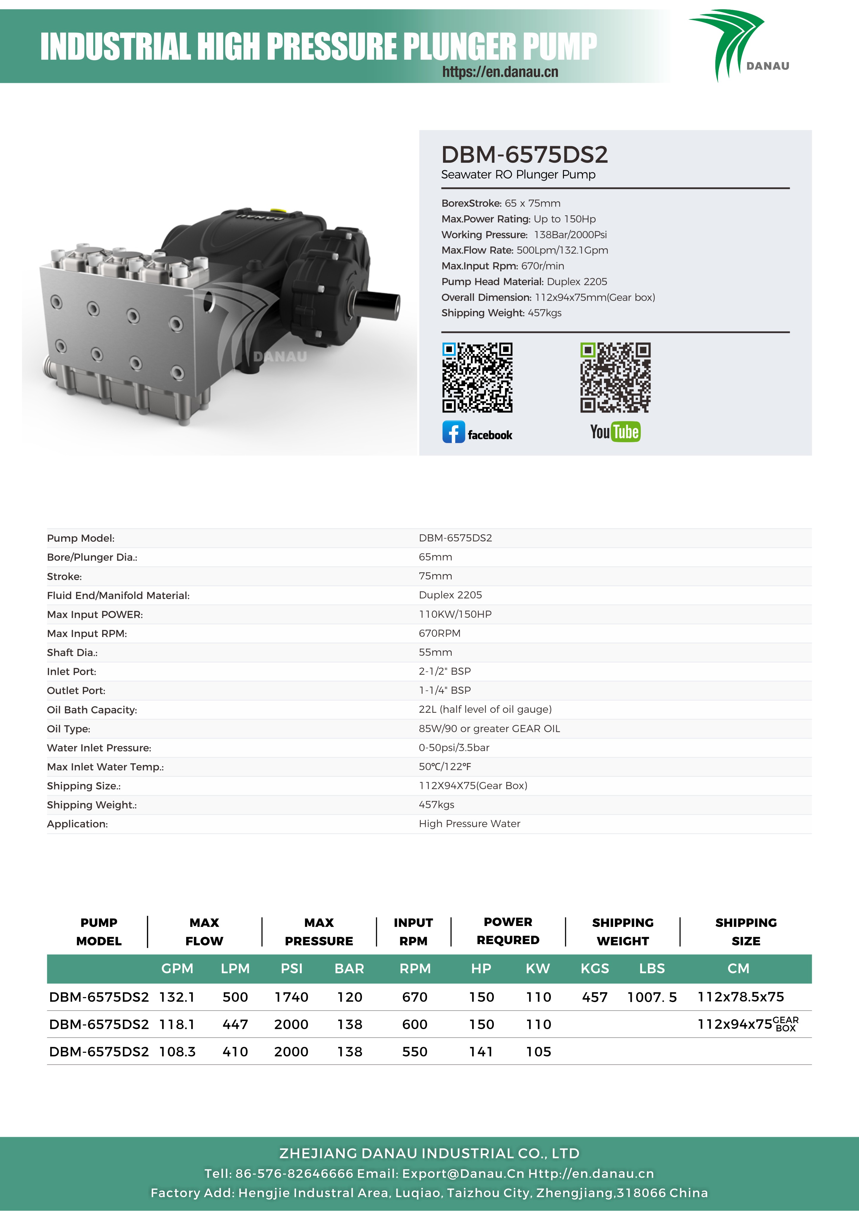 | Fluid End/Manifold Material: | Duplex 2205 | |