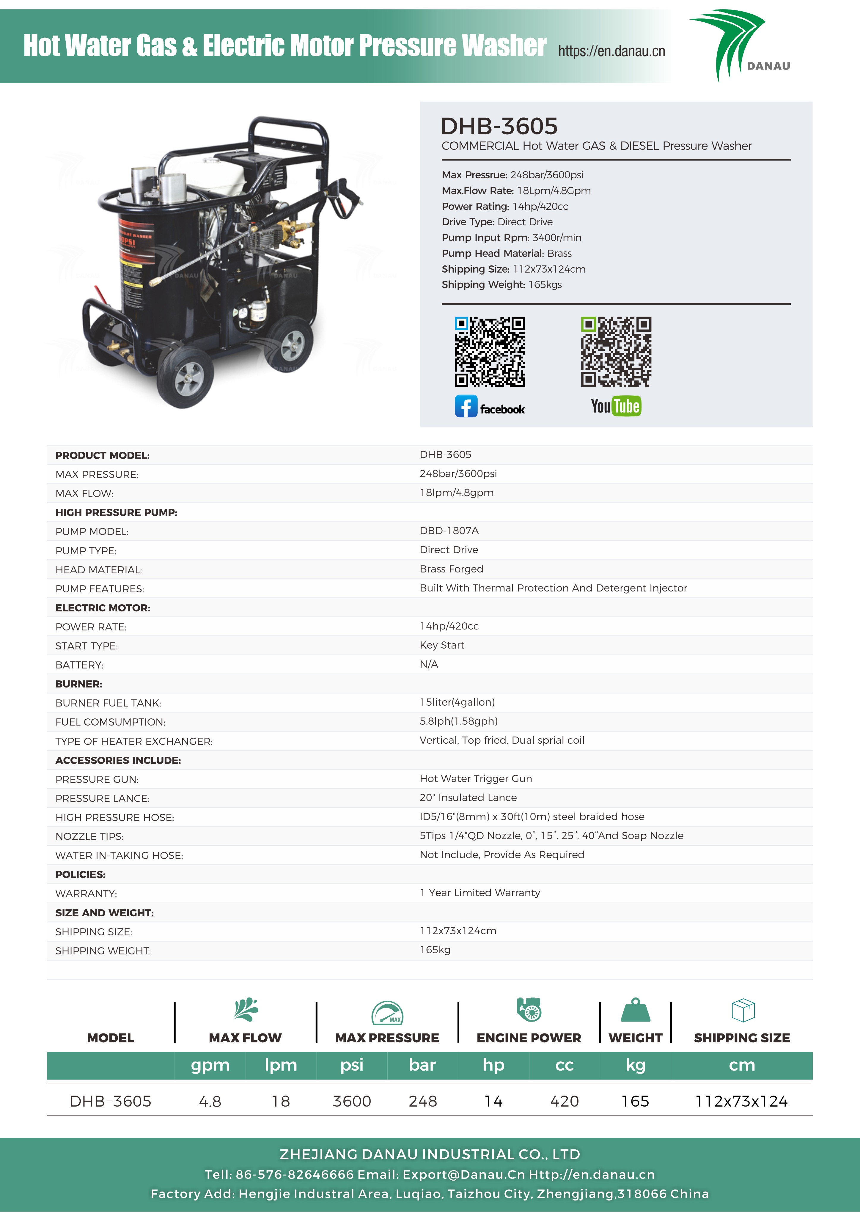 | MAX PRESSURE: | 248bar/3600psi | ||