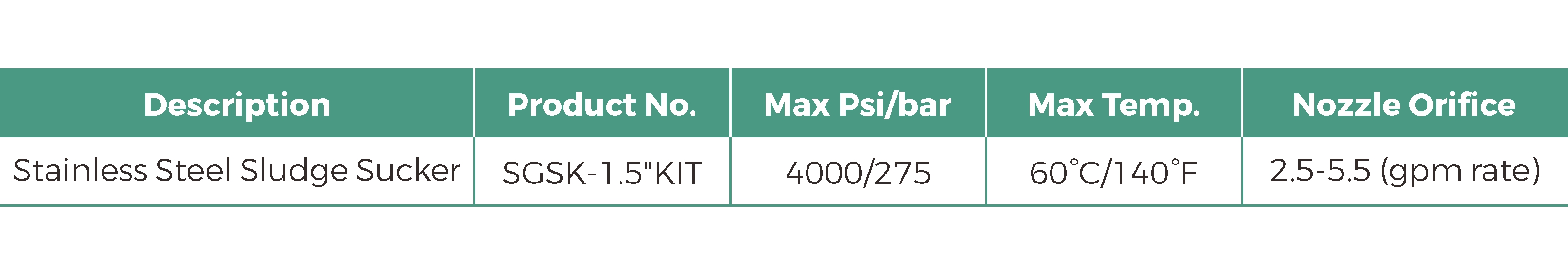 All 304 stainless steel precision casting construction, 45mm hose barb, build with 15° nozzle, 3/8"female inlet fitting. When high pressure water jetting pass through the sludge sucker it will produce a large volume siphon and turn the sludge sucker as a water pump, for a max 18 times volume as a pressure washer(4000 psi@4gpm), can quick transferring a large amount of water or slurry in a short time.